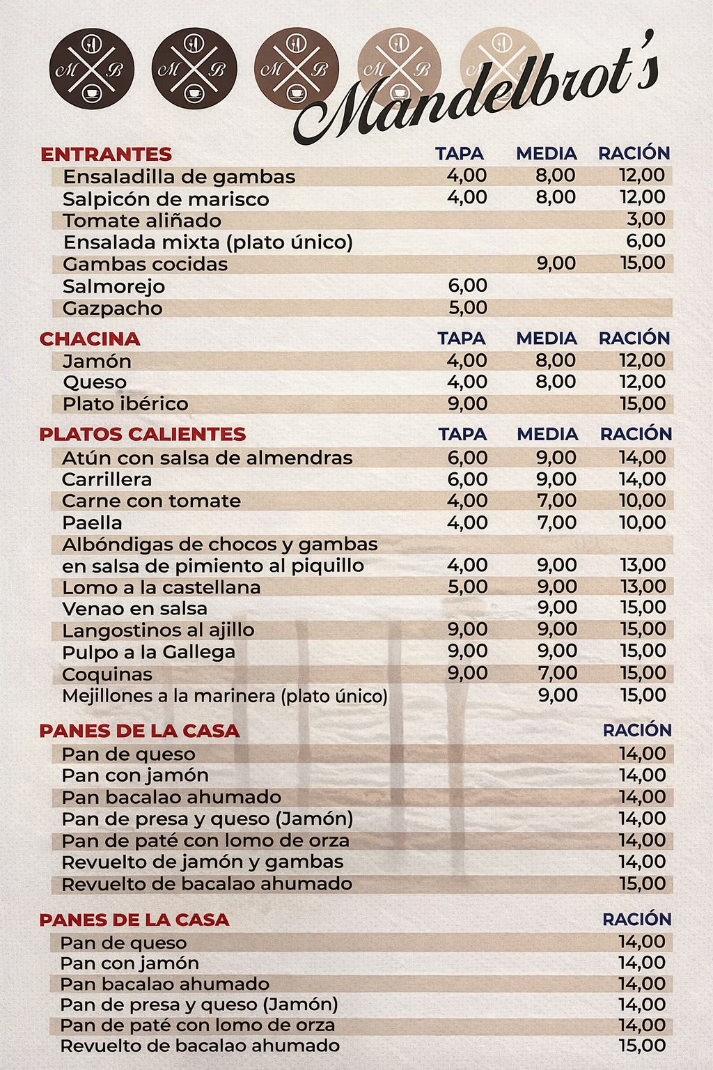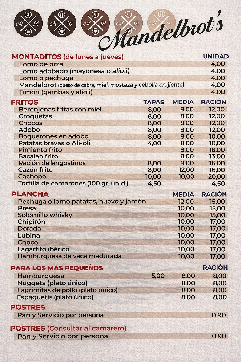 Sabores mediterráneos, platos para todos los gustos y opciones para cualquier momento del día, en Mandelbrot Restaurante Matalascañas. Entrantes, montaditos, chacinas, pescados, carnes y mucho más, en un entorno relajado.